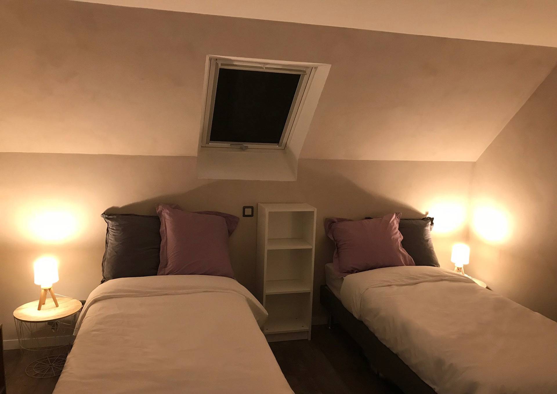 maison entière de 100m2 sur deux niveaux. Les chambres sont à l'étage. Nous disposons d'un canapé convertible(vrai couchage 140x190cm) au rez de chaussée. 1 wc et une salle de bain à chaque niveau. Logement entièrement équipé (lave linge séchant, lave vaisselle, gazinière, micro onde, bouilloire, cafetière, robot, vaisselle, télévision, lecteur DVD, jeux de société…