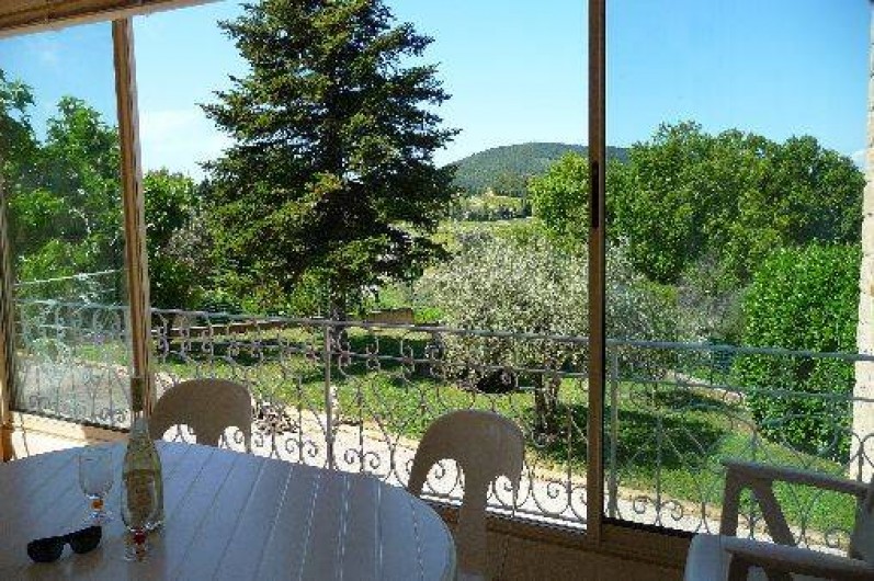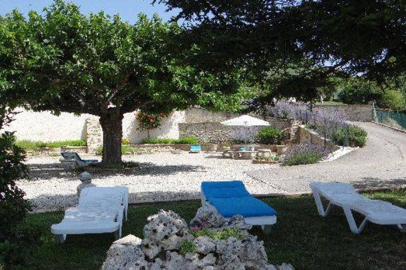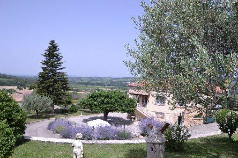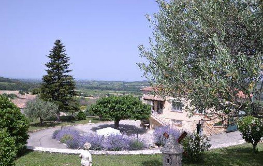 Location à Villedieu. Grande maison individuelle tout confort à flanc de colline bénéficiant d'une vue exceptionnelle sur les vignes et oliviers de la vallée de l'Aygues. 110 m² de surface habitable et 1000 m² de terrain clos arboré et fleuri, portail électrique.