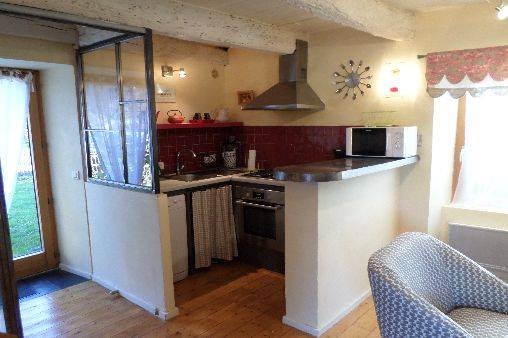 Gîte pour 2/3 personnes, il donne sur un pré dans lequel ânes, poules vivent paisiblement.