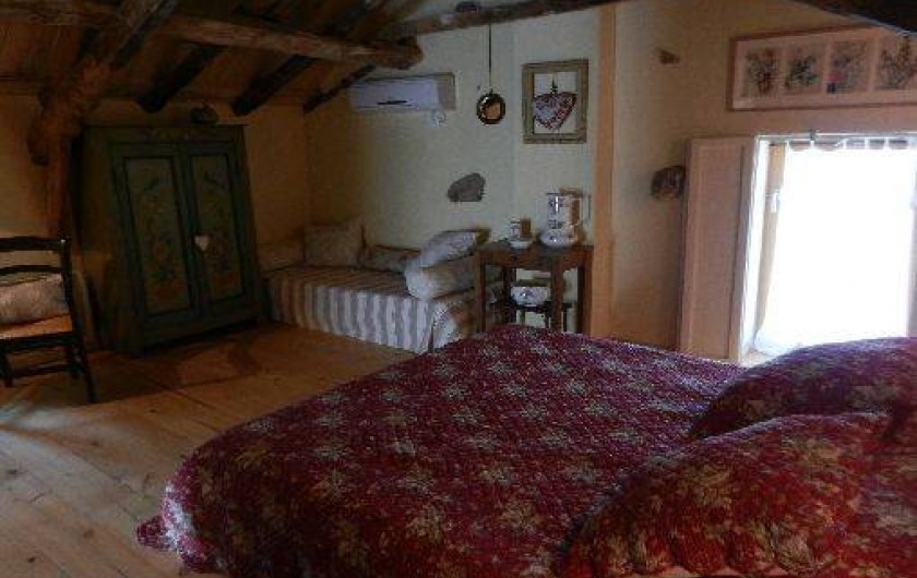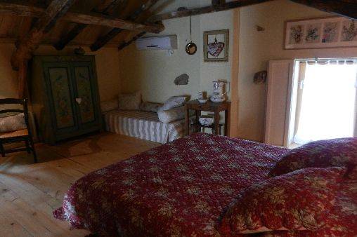 A l'étage, une grande chambre avec lit de 160 (climatisée) et une salle de bains avec baignoire, vous permettront de profiter du repos aspiré. Les photos suivantes définissent l'ambiance de ce gîte.