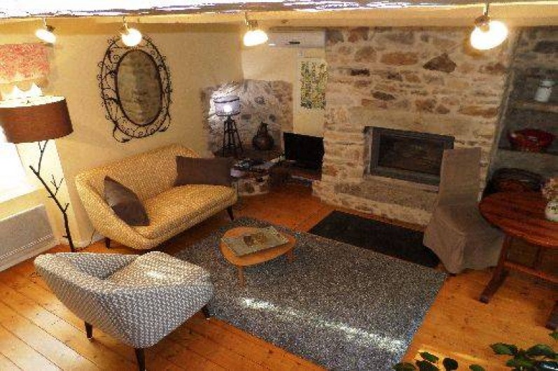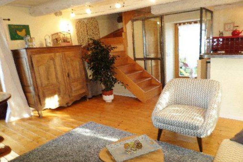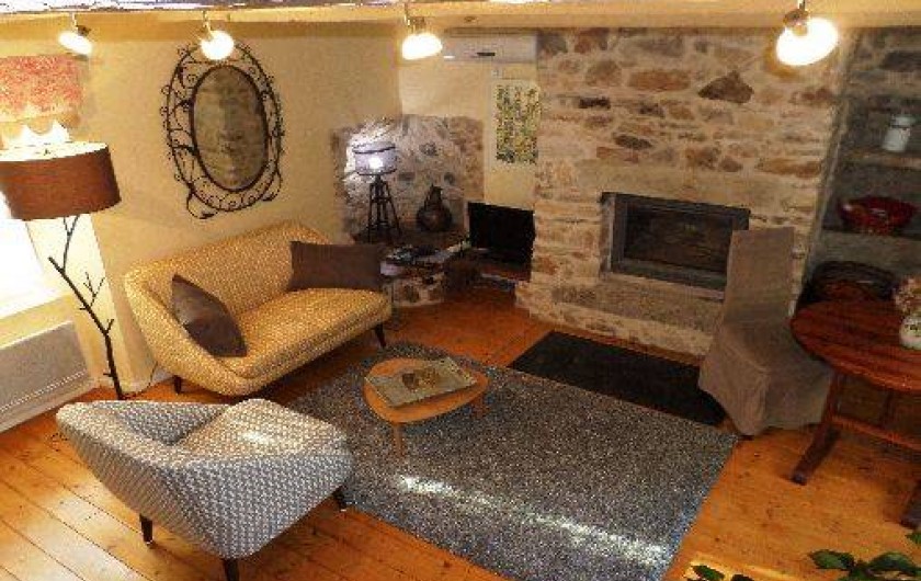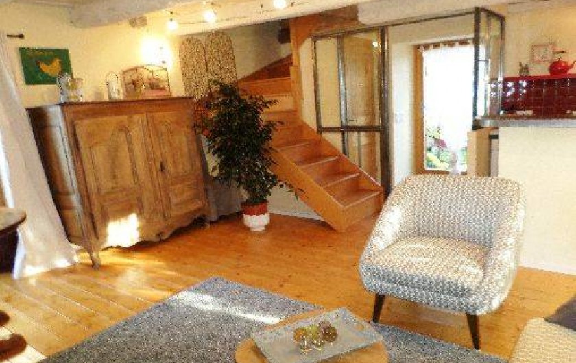 Sur le niveau de plein pied, un séjour (climatisé) est équipé d'une cheminée,la cuisine (L.V. Four) est ouverte sur celui-ci.
