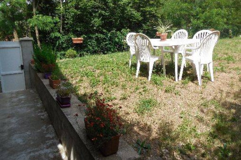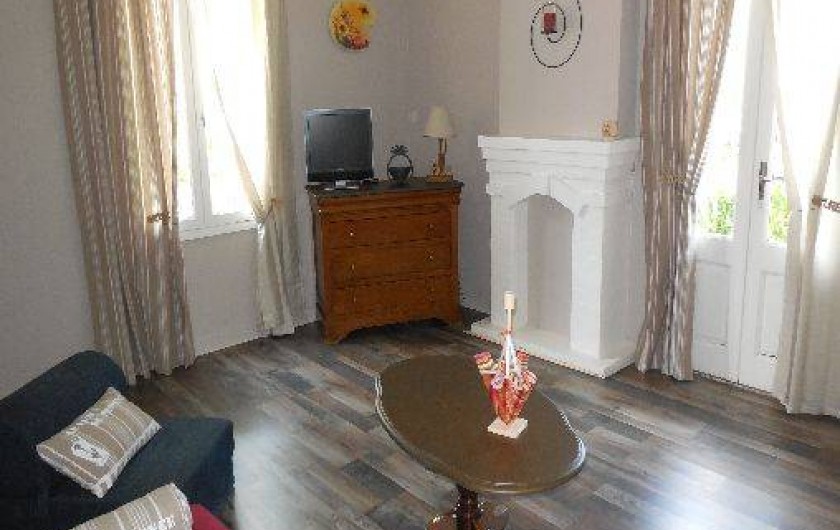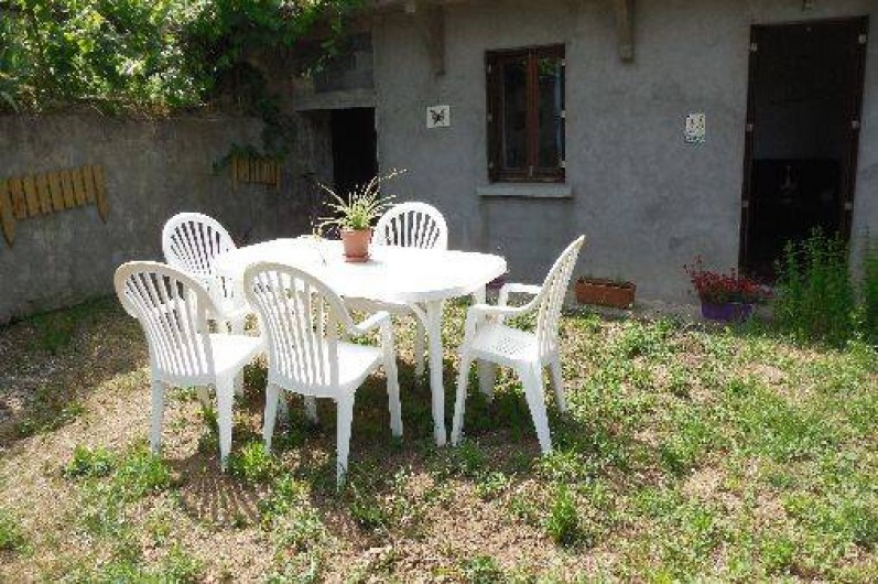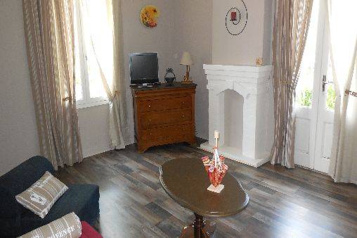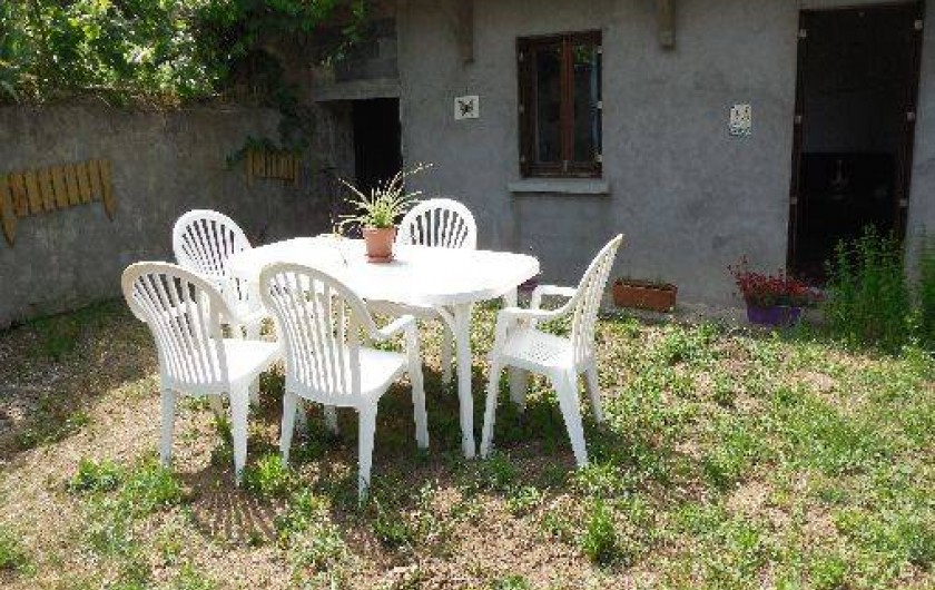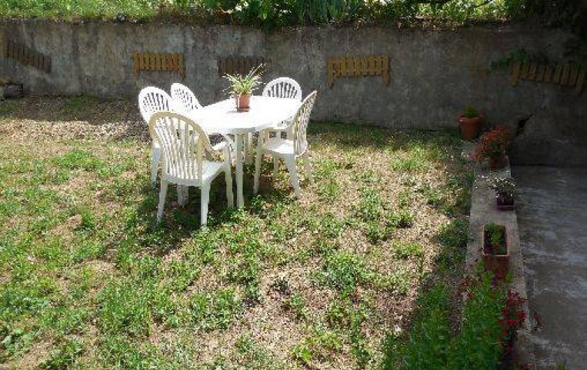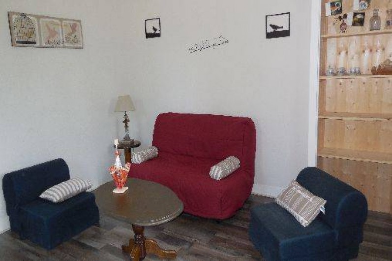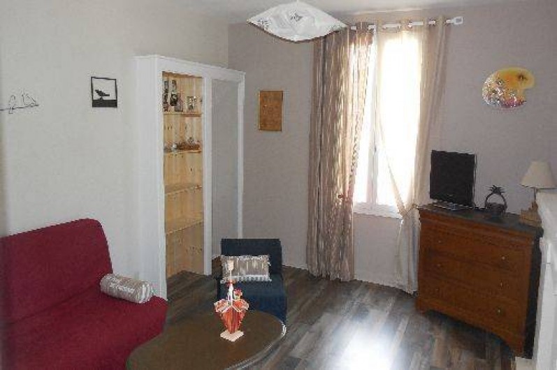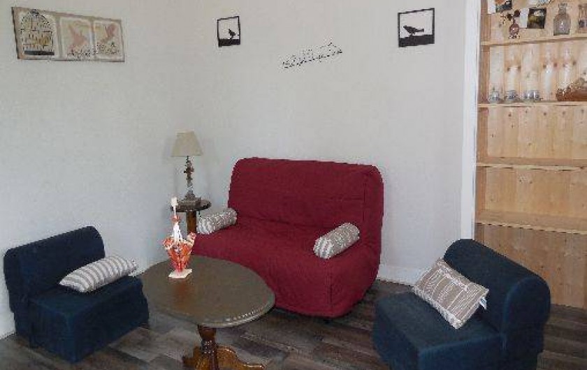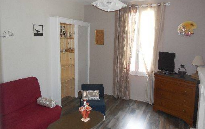Equipement : cuisine équipée, salle de bain / WC, 1 chambre avec lit double, 1 chambre avec lit simple, 1 salon avec clic-clac 2 places, TV, 1 cour extérieure avec salon de jardin, parasol, abris pour vélo.