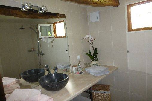 Accessible aux personnes handicapées car deux des chambres et la salle d'eau avec douche à l'italienne sont de plain pied avec la terrasse et le jardin.