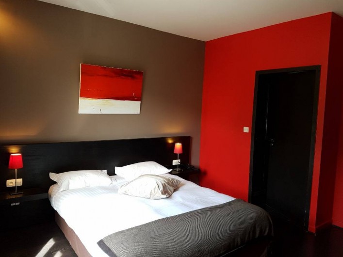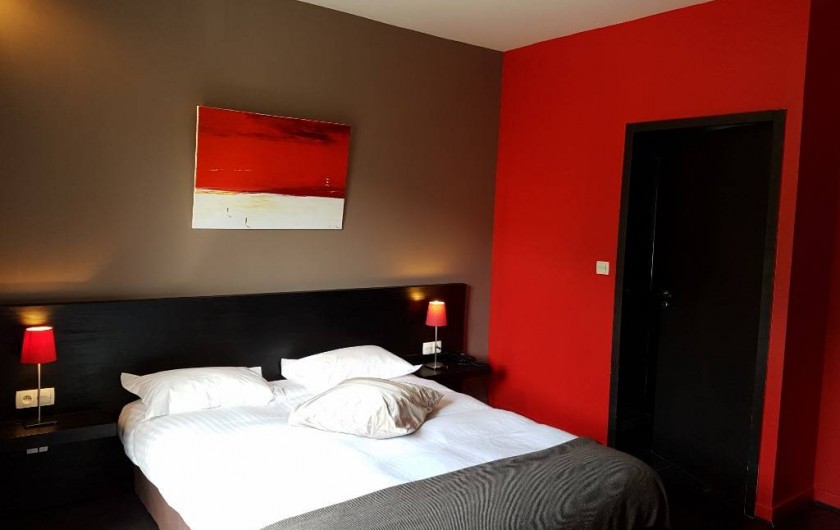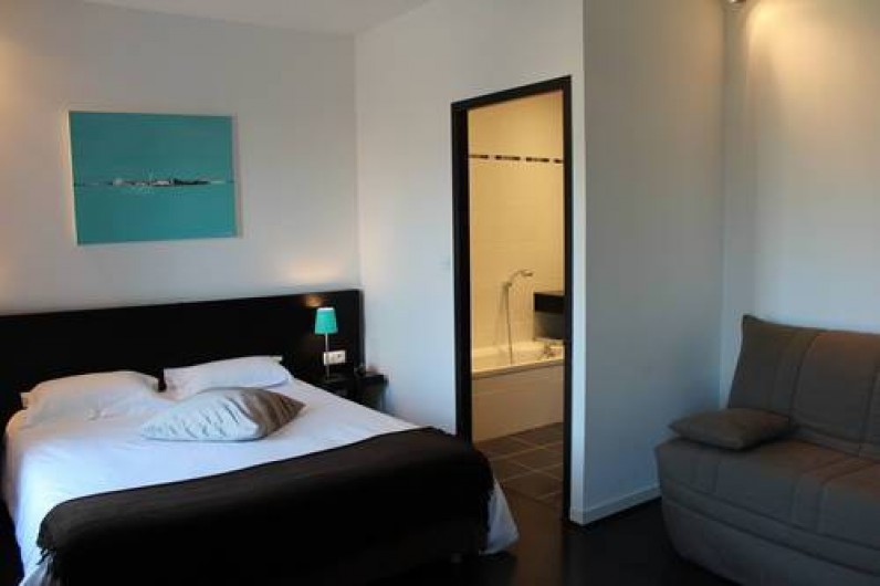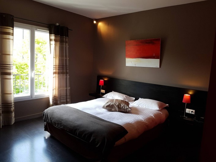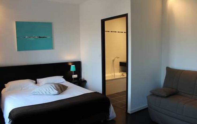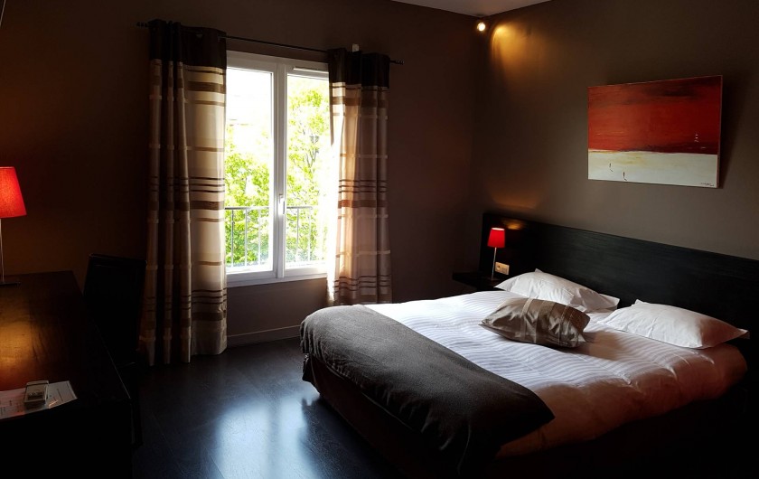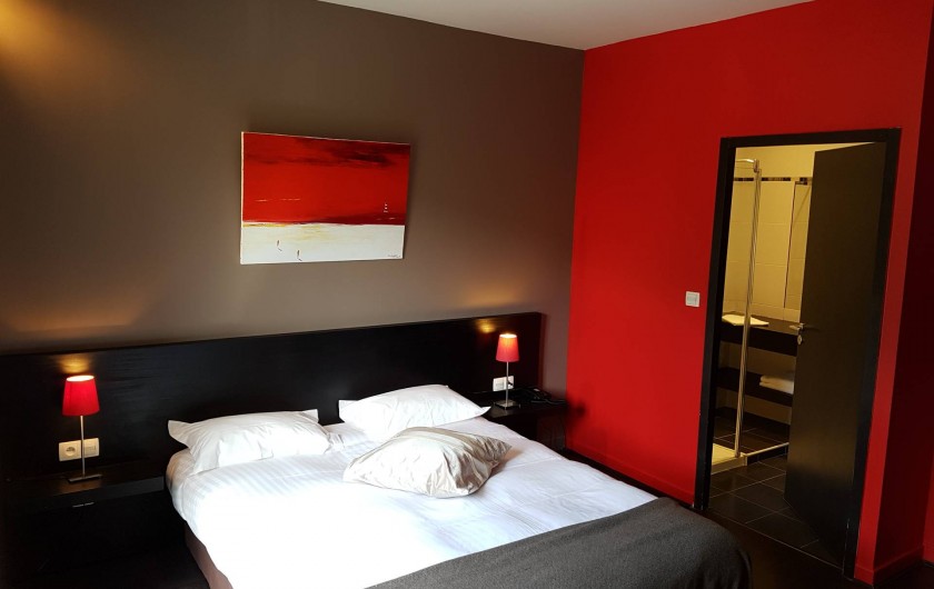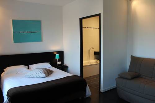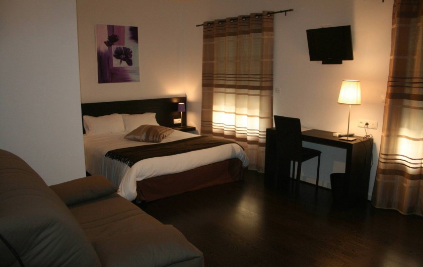 Chambre moderne et élégante Lit 160*200 avec lit d'appoint 140*200 ou canapé Salle de bain privative avec baignoire Climatisées et insonorisées, elles comprennent aussi une télévision par satellite à écran plat Connexion WIFI - CANAL+ Parking gratuit