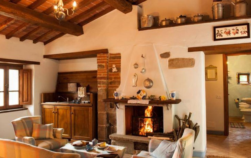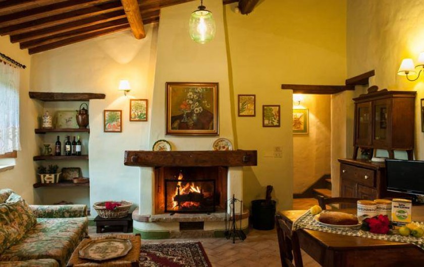 MINT ... la cheminée en face du canapé-lit ... un mur de pierre avec niche originale ... ambiance chaleureuse ... couple ou une petite famille ...