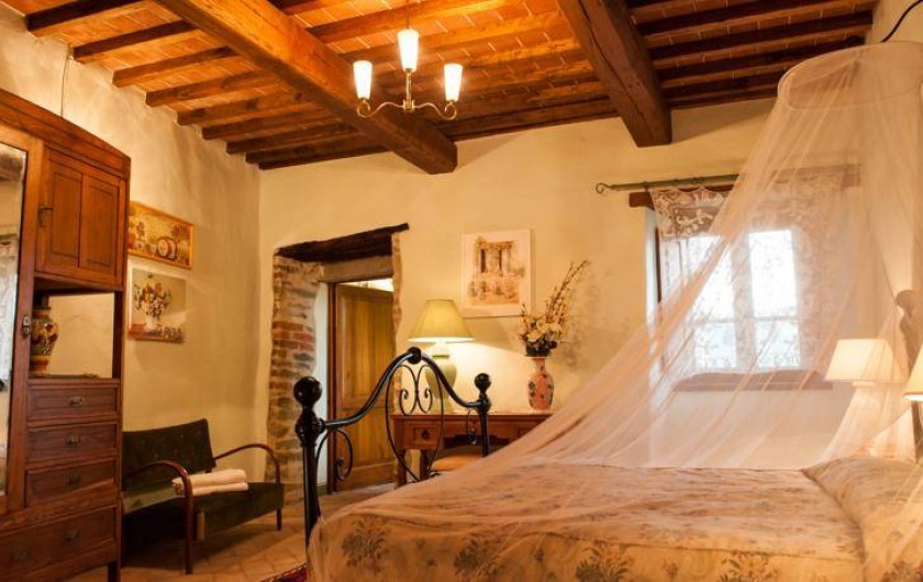 NIPPETELLA Elegance ... lit à baldaquin et un canapé bordeaux ... pour la famille ... la lisière de la forêt, mais avec vue sur la vallée ... plafond à poutres apparentes haute