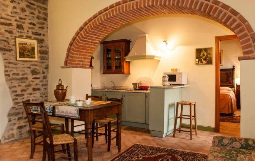 SAGE l'escalier en pierre d'origine vous emmène au premier étage ... un arc de briques sépare la cuisine de la salle à manger ... lumière et l'atmosphère rustique dominent ... en vert ...