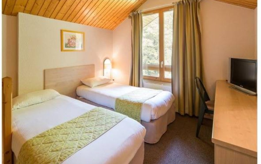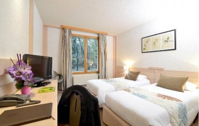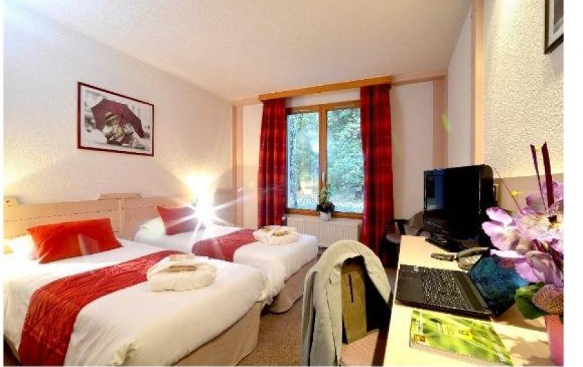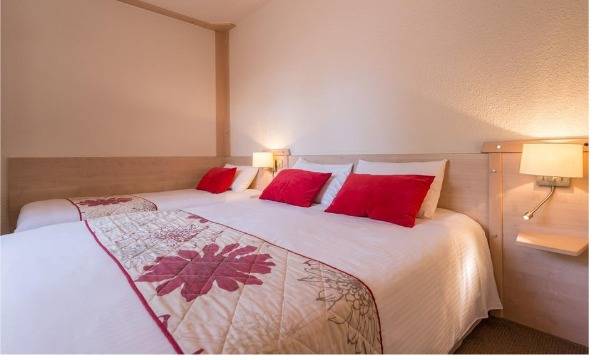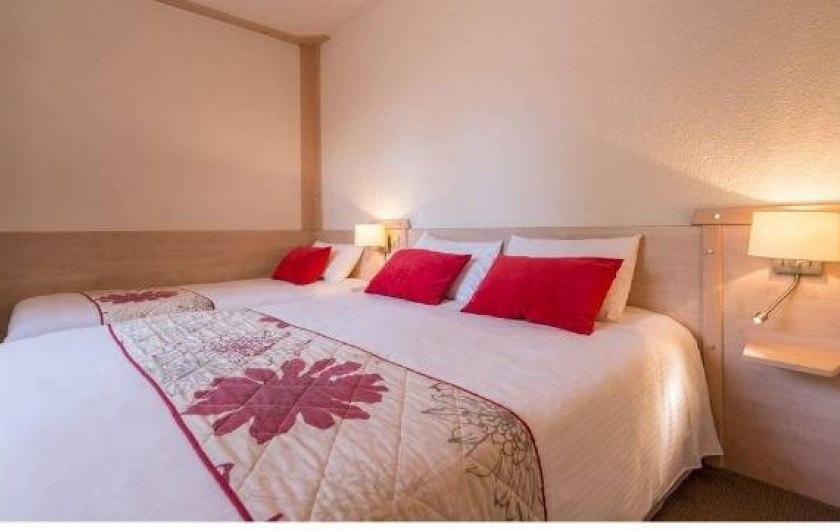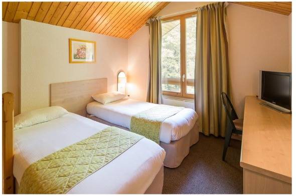 – chambre à lits jumeaux (Twin) : deux lits côte à côte de 90 x 190 (dont une pour personne à mobilité réduite).