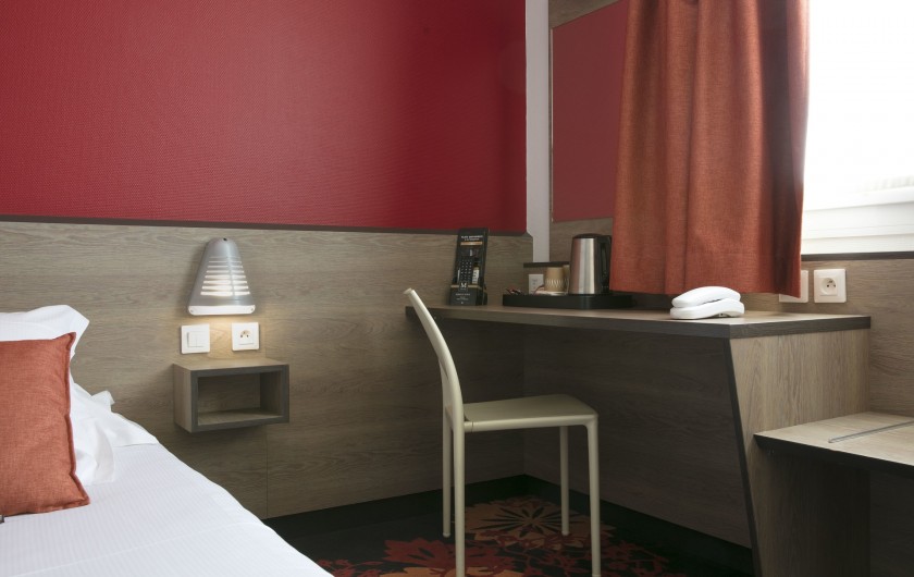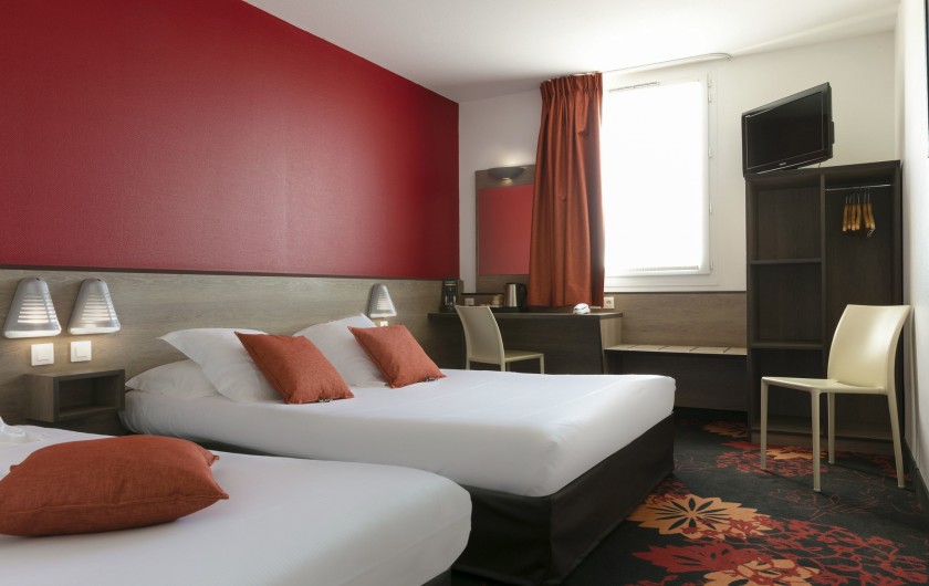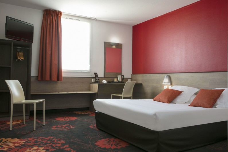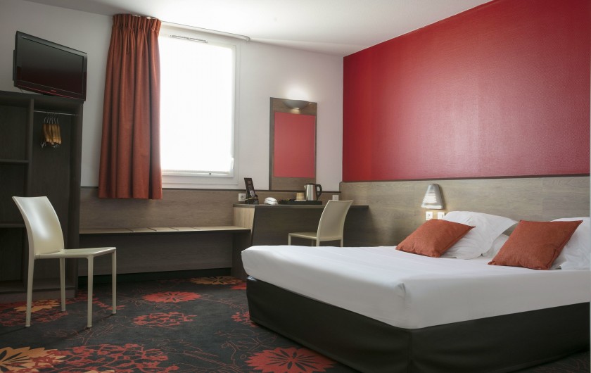Ce sont 77 chambres spacieuses et confortables de 1 à 4 personnes. Agréables à vivre, nos chambres sont toutes «non-fumeur», connectées au Wifi gratuitement, climatisées l’été et très bien insonorisées. Elles disposent d'une télévision à écran plat vous proposant Canal+, 24 chaines françaises et étrangères et une dizaine de radios. Sur le bureau de la chambre, vous apprécierez de retrouver un plateau de courtoisie vous offrant quelques boissons chaudes et autres sucreries pour vous souhaiter la bienvenue dans notre établissement.