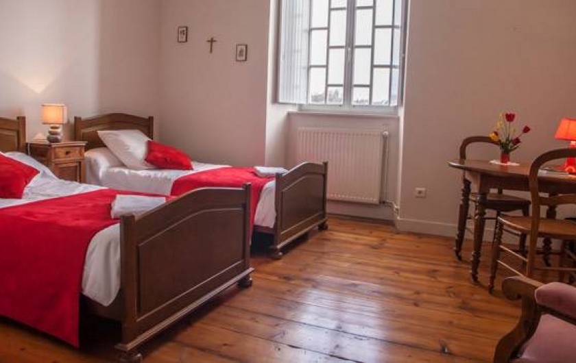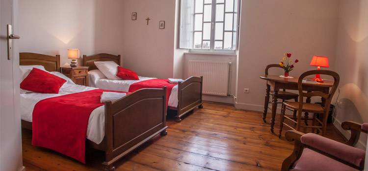 d’une chambre avec salle d’eau et toilettes privatives. En couple, il vous sera proposé une chambre à deux lits avec salle d’eau et toilettes privatives. Vous êtes en groupe, demandez une chambre à 4 – 5 ou 6 lits. Dans le cas de personne à mobilité réduite, le GRAND COUVENT DE GRAMAT propose plusieurs chambres et salles d’eau équipées spécifiquement.