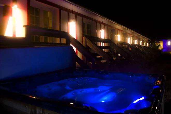 Chaque suite dispose au jacuzzi en libre service 24/24, la terrasse et au spa de nage (ouvert uniquement à la saison d'été), terrasse