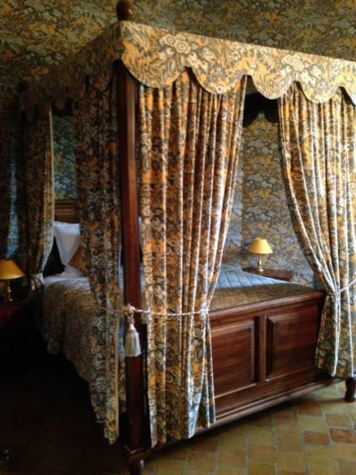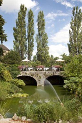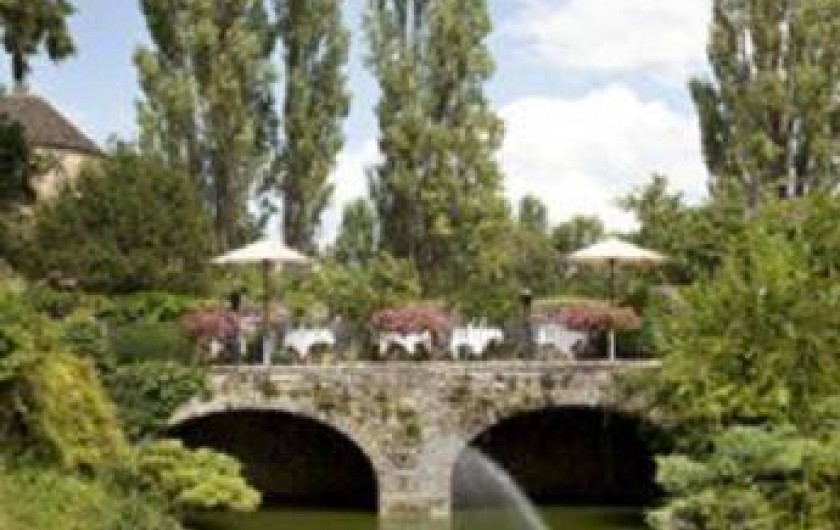 Les repas sont servis, soit par beau temps sur la terrasse à l’ombre des arbres dont certains sont plusieurs fois centenaires, soit dans un des salons, sous des plafonds à la française, à proximité d’un feu de chemin.