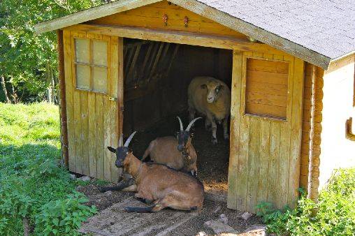 Étalé sur un hectare, le Domaine de Basil protège des poissons dans un étang, des chèvres et des moutons qui partagent la même maison au milieu d’un parc clôturé, des petits cochons, des poules qui pondent selon leur humeur, sans oublier Théo et Tango les gardiens des lieux !