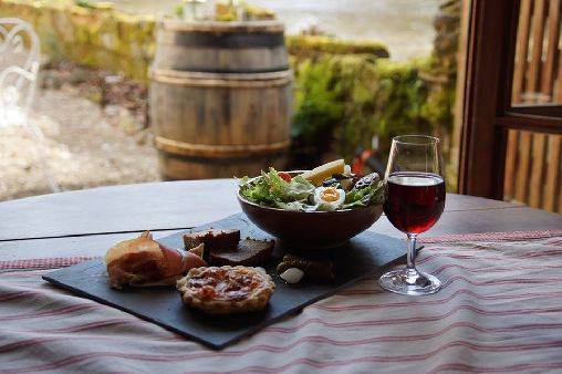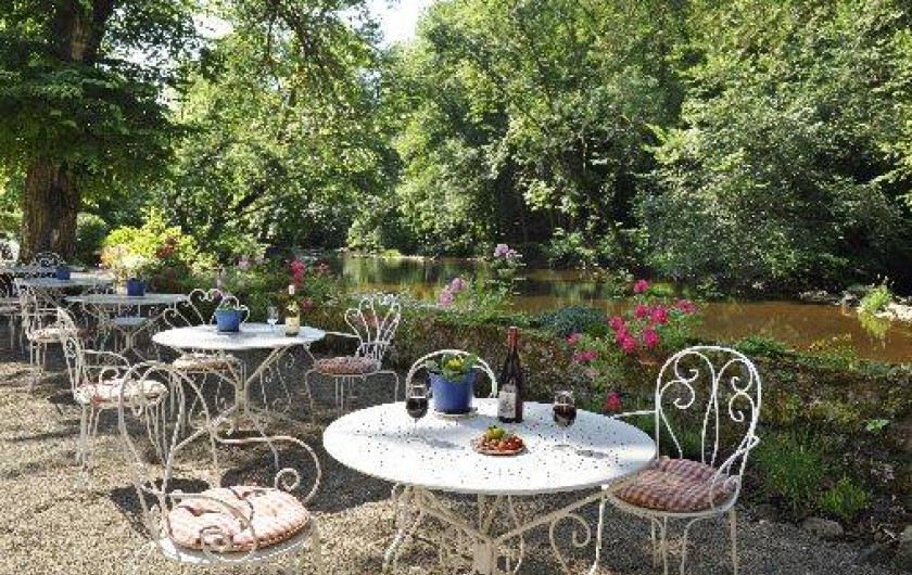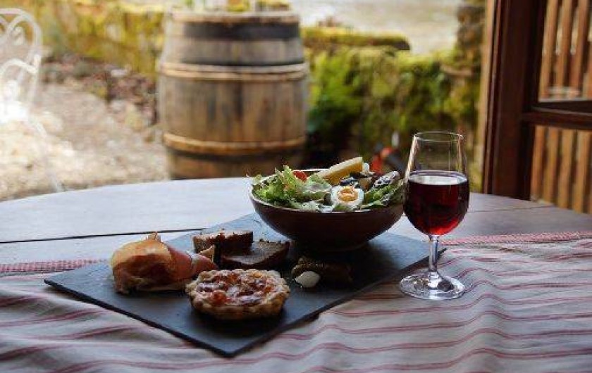 Possibilité d'assiettes régionales (sur réservation) servies sur la terrasse le long de la rivière.