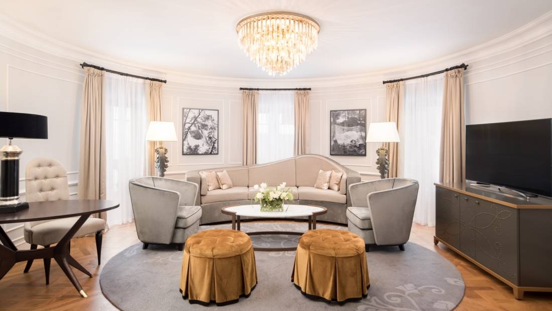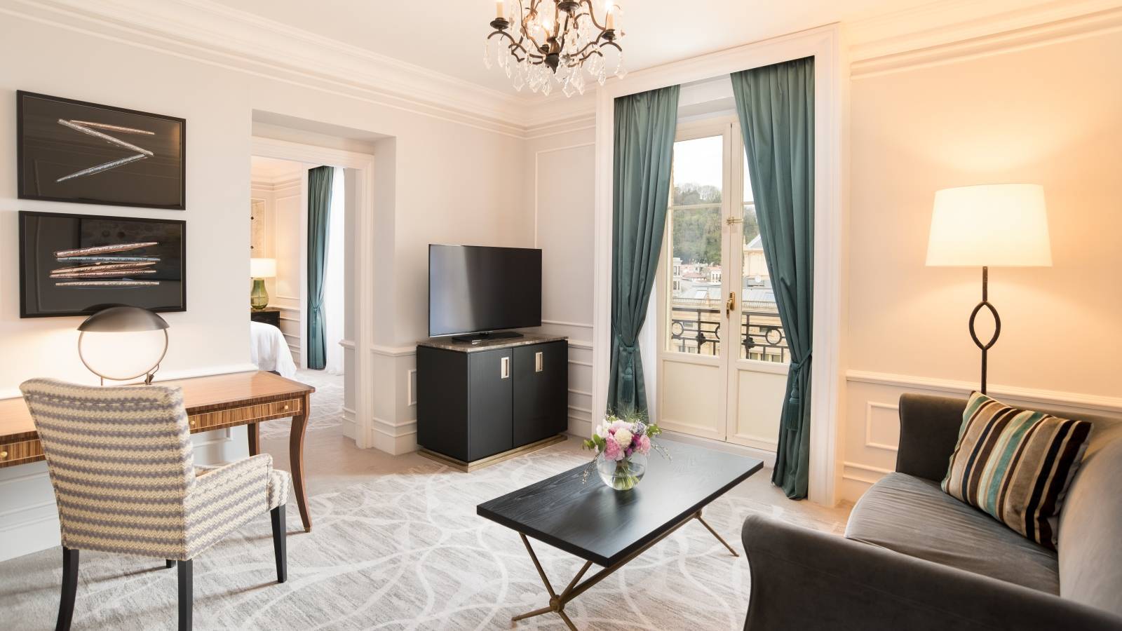 Avec leurs vues sur les eaux limpides et le lit du fleuve, nos suites Junior captivent littéralement nos clients, à bien des égards. Le vaste vestibule, meublé d’un luxueux canapé et d’une crédence, illustre la grandeur de la suite et mène à la salle de séjour où une harmonieuse palette de tons gris, beige et vert forme une toile de fond atemporelle alliant avec charme architecture Belle Époque et décoration contemporaine.