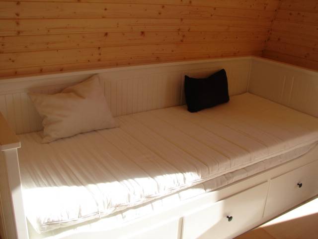 Hébergement très original par sa forme arrondie qui s’intègre complètement dans la nature, 100% glamour, pour 2 à 3 personnes. Équipé de : un lit 140 x 200, un canapé gigogne, un coin cuisine, une douche, un lavabo et un toilette.