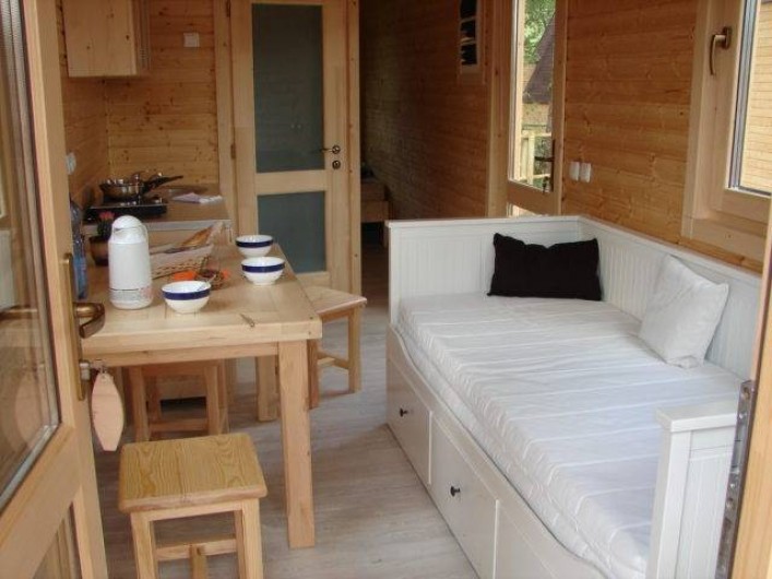 C’est une structure habitable en bois pour toutes saisons et qui offre une capacité d’hébergement de 2 à 5 personnes. C’est un logement ingénieux et confortable, s’élevant à 7m50 avec mezzanine pour les enfants : véritable transition vers un mode de vie plus respectueux de l’environnement.