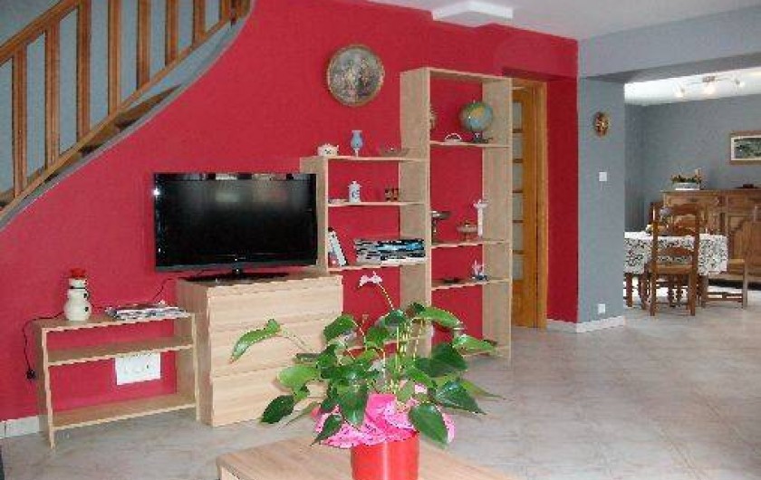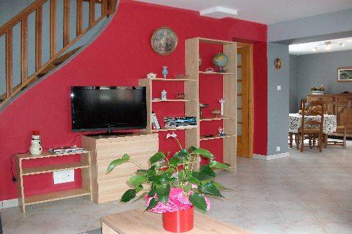 Rez de Chaussée : Salon (TV écran plat), Salle à manger, cuisine équipée ouverte ( réfrigérateur,congélateur, four,
