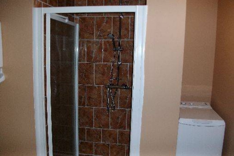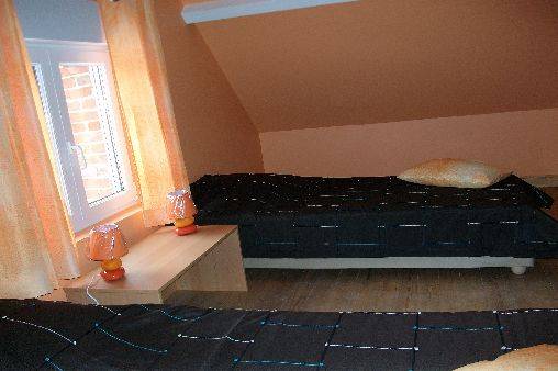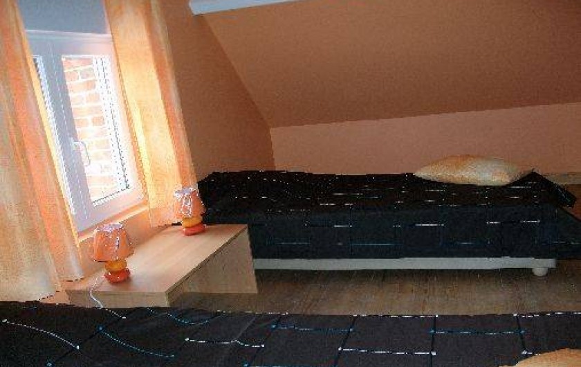 Etage : 1 chambre avec 2 lits de 90, rangement et bureau.