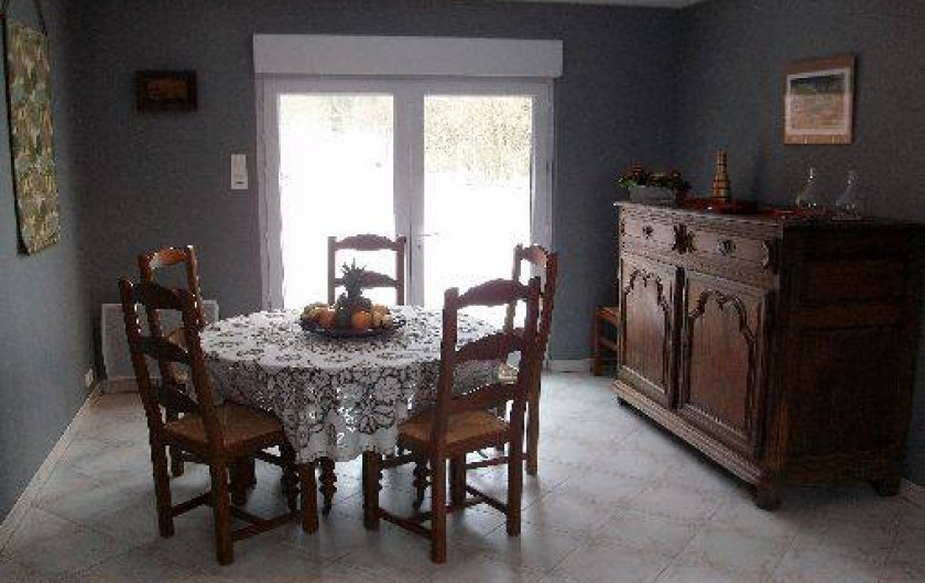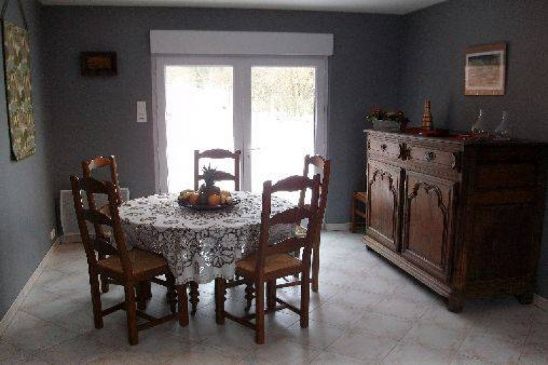 terrasse et son salon de jardin. Garage communiquant avec la maison.