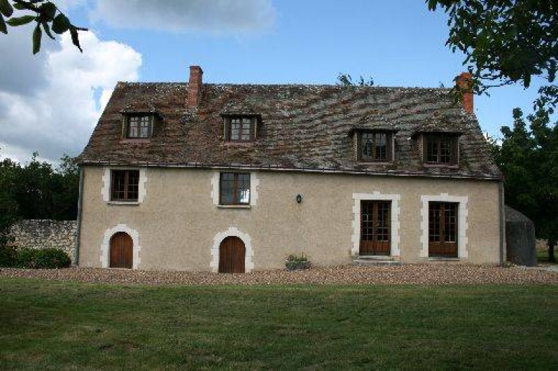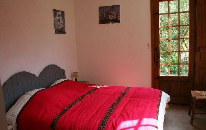 Maison au milieu d’une cour ombragée permettant de profiter d’un espace tranquille, avec terrasse au Sud, de table de jardin et de chaises longues