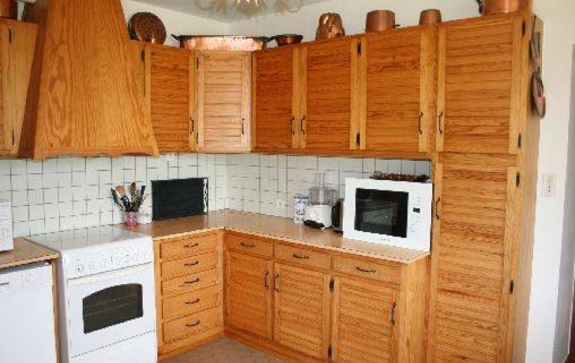 Cette longère de 170 m² pour 8 personnes, très agréable à vivre, comprend un grand salon de 45 m² avec cheminée et télévision, une grande salle à manger de 30 m² et une cuisine équipée (cuisinière avec four électrique, micro-ondes, réfrigérateur, lave-vaisselle, robot, bouilloire électrique …).