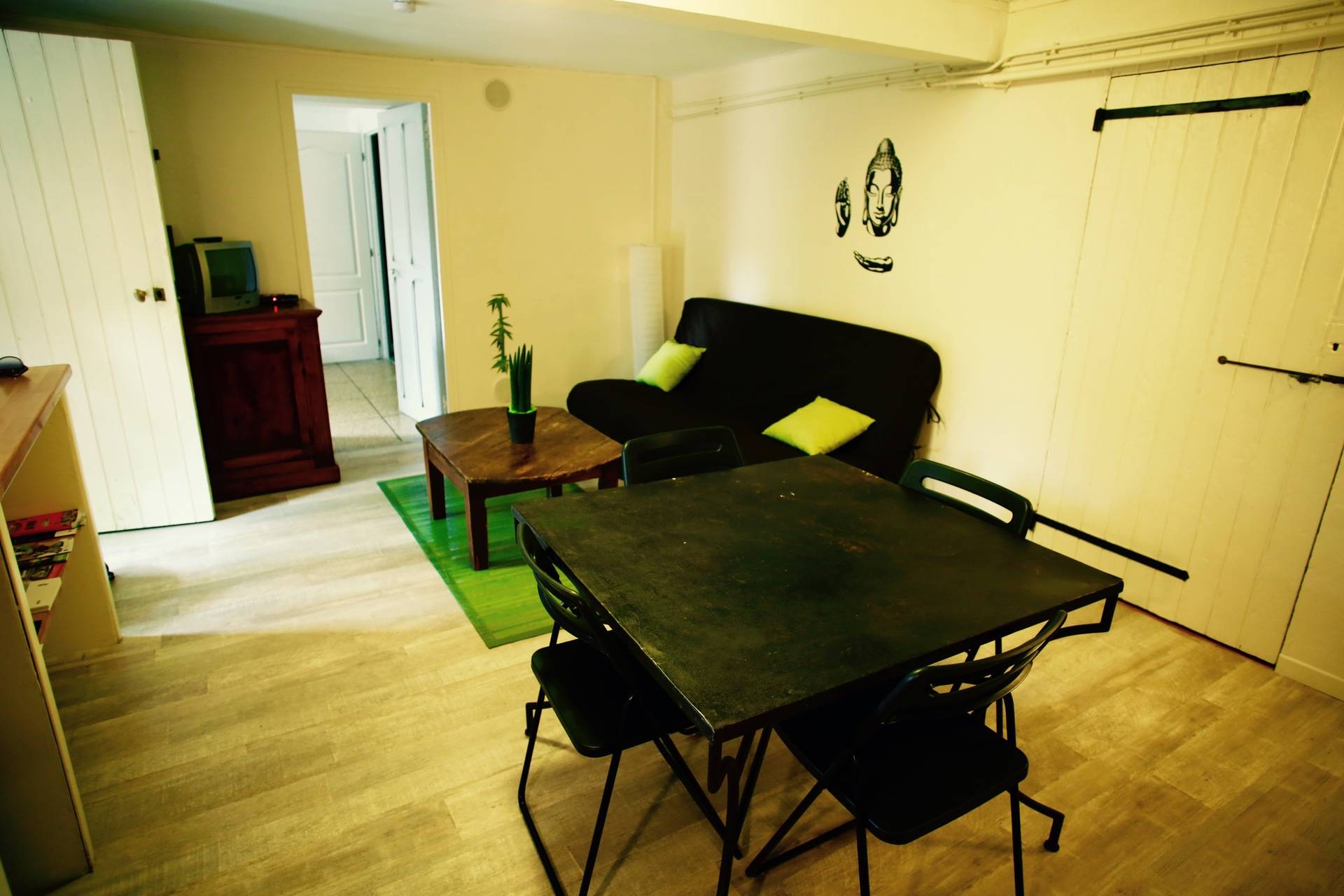 Pour 4 personnes RDC d'une maison. Donnant sur le jardin, accessible librement, avec barbecue, table et chaises ...Vous serez totalement autonome dans votre logement. Une chambre indépendante avec lit double et salle de bain.