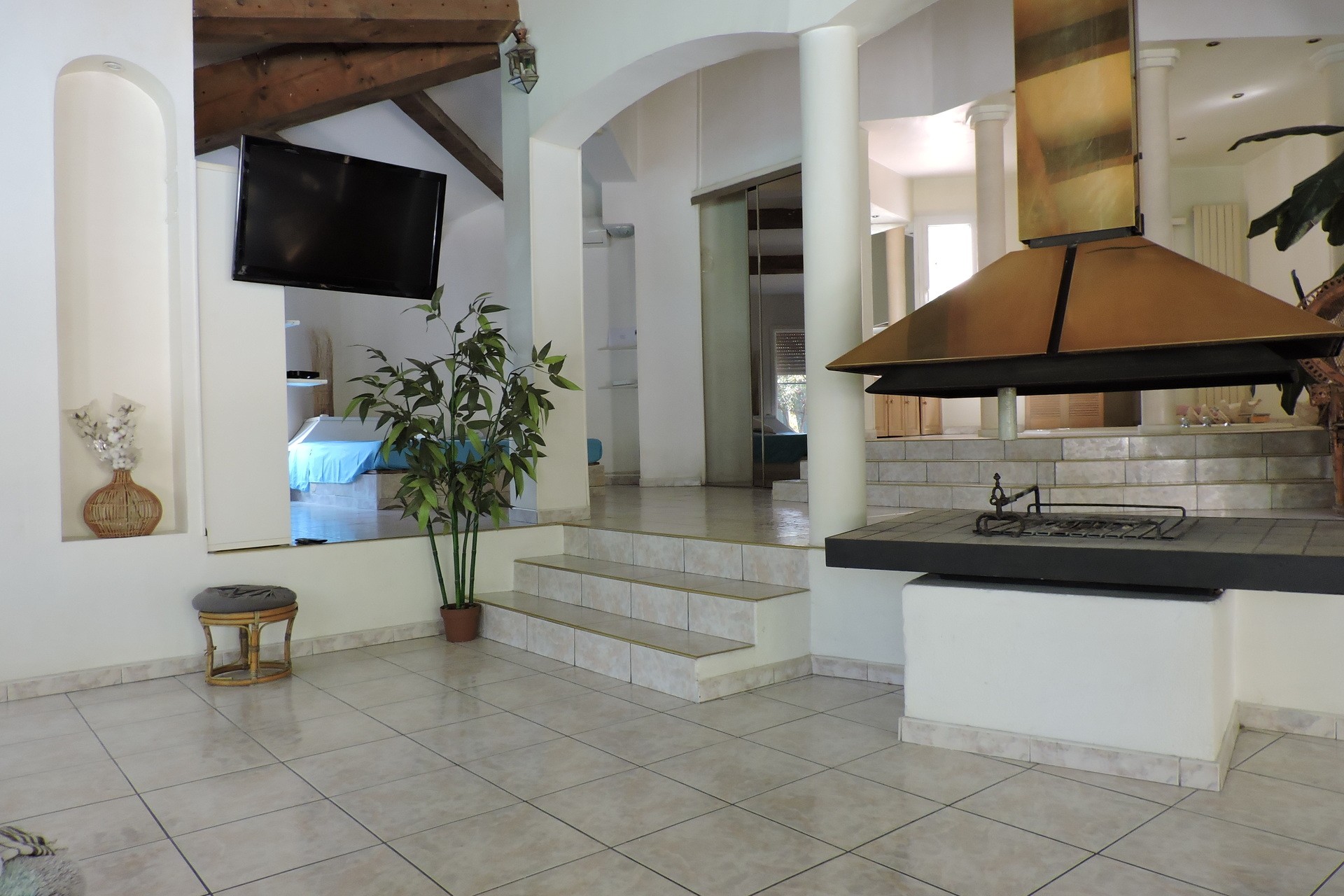---Dans un site classé et pittoresque, superbe propriété style loft avec un lit 2 places (200 x 200), offrant vue sur salon, jacuzzi,une cheminée, cuisine équipée, de plein pieds 180 m² sur un parc paysage, vue sur la piscine les collines.La deuxième chambre avec un lit 2 places (160x200) fermé par une porte.Avec un détecteur de fumée