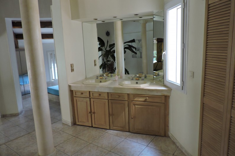 1 Salle de bain équipé (douche WC,2 vasques avec grand miroir)