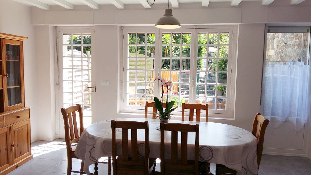 Maison de ville typique en pierres entièrement restaurée (début 2016), ancien commerce de graines, "La Graineterie" notre gîte avec cour pour 7/8 personnes, vous accueille en plein cœur du magnifique village de Barfleur.