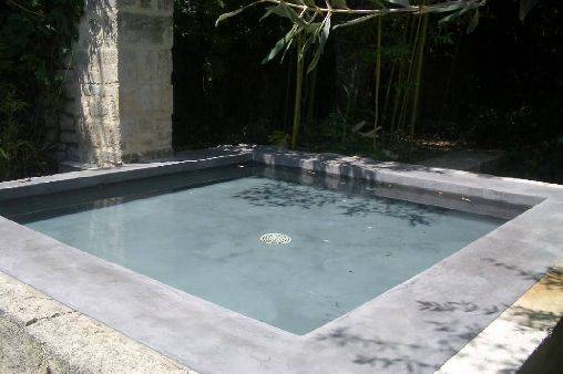 La piscine comporte deux parties sur deux niveaux différents, l'une dite la "grande piscine" mesure 7m sur 3m est située au niveau bas, (1,4m de profondeur) l'autre dite "la petite" est située au niveau haut, c'est plutôt une pataugeoire pour les enfants, elle mesure 2,3m sur 2,3 (50 cm de profondeur). Les plans sont disponibles sur demande.