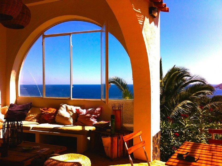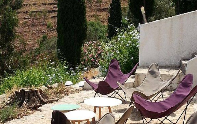 ardoises de Cadaques .Hamac et bancs sans vis a vis .