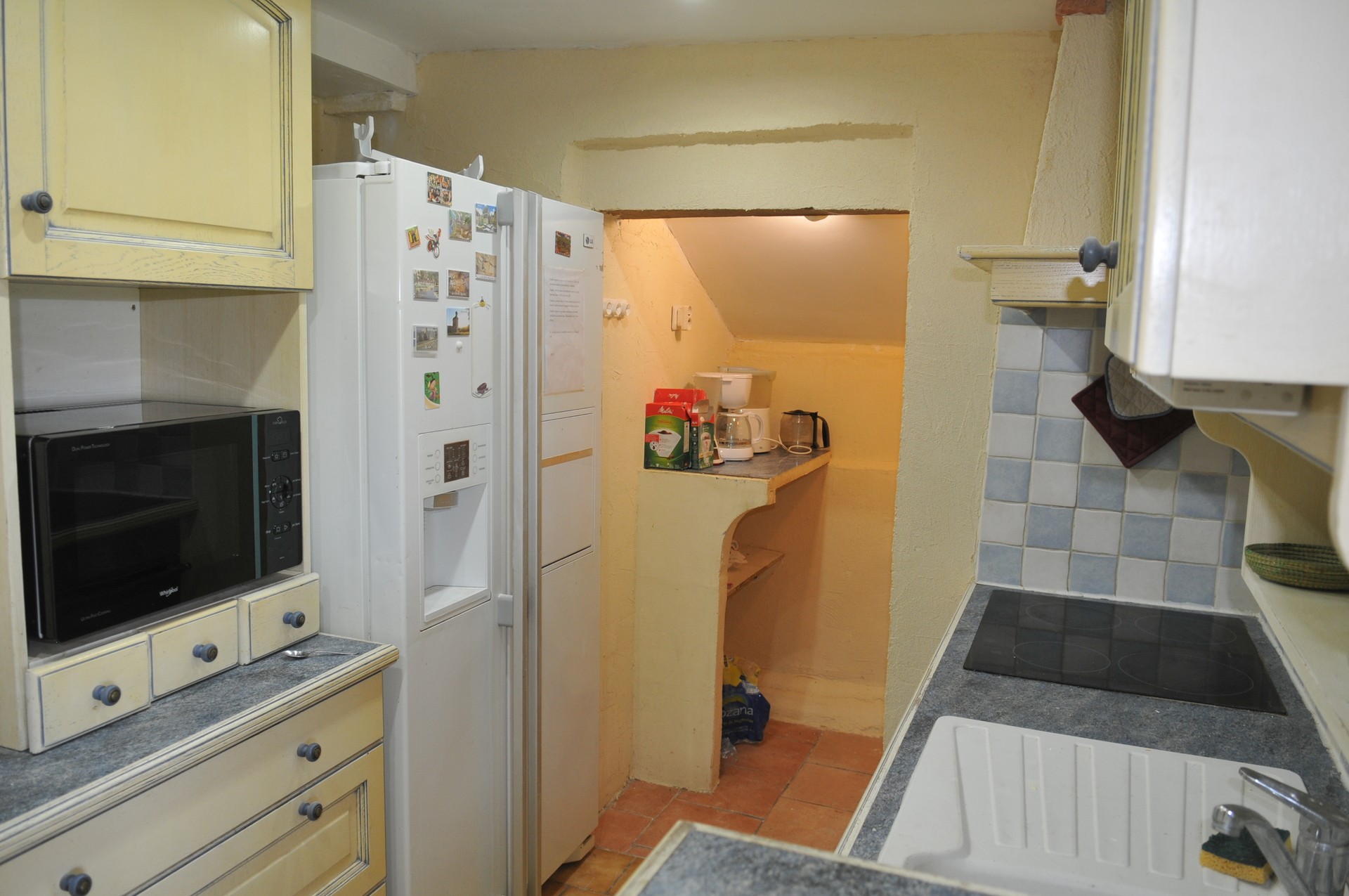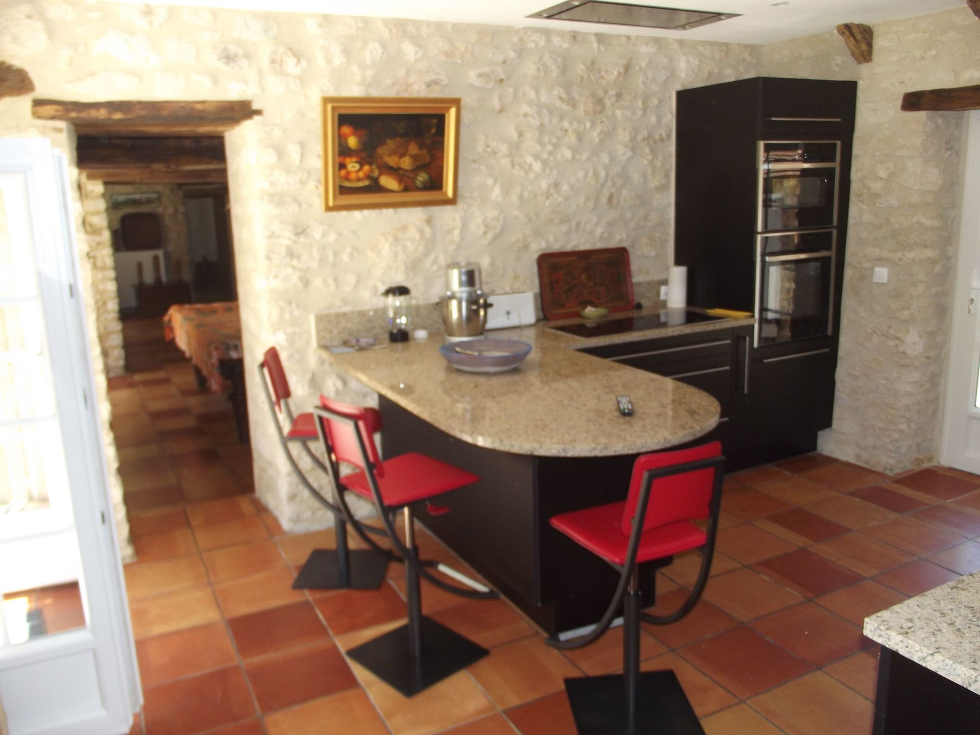 a manger avec cheminée est indépendante et communique avec la cuisine avec un passe plats.