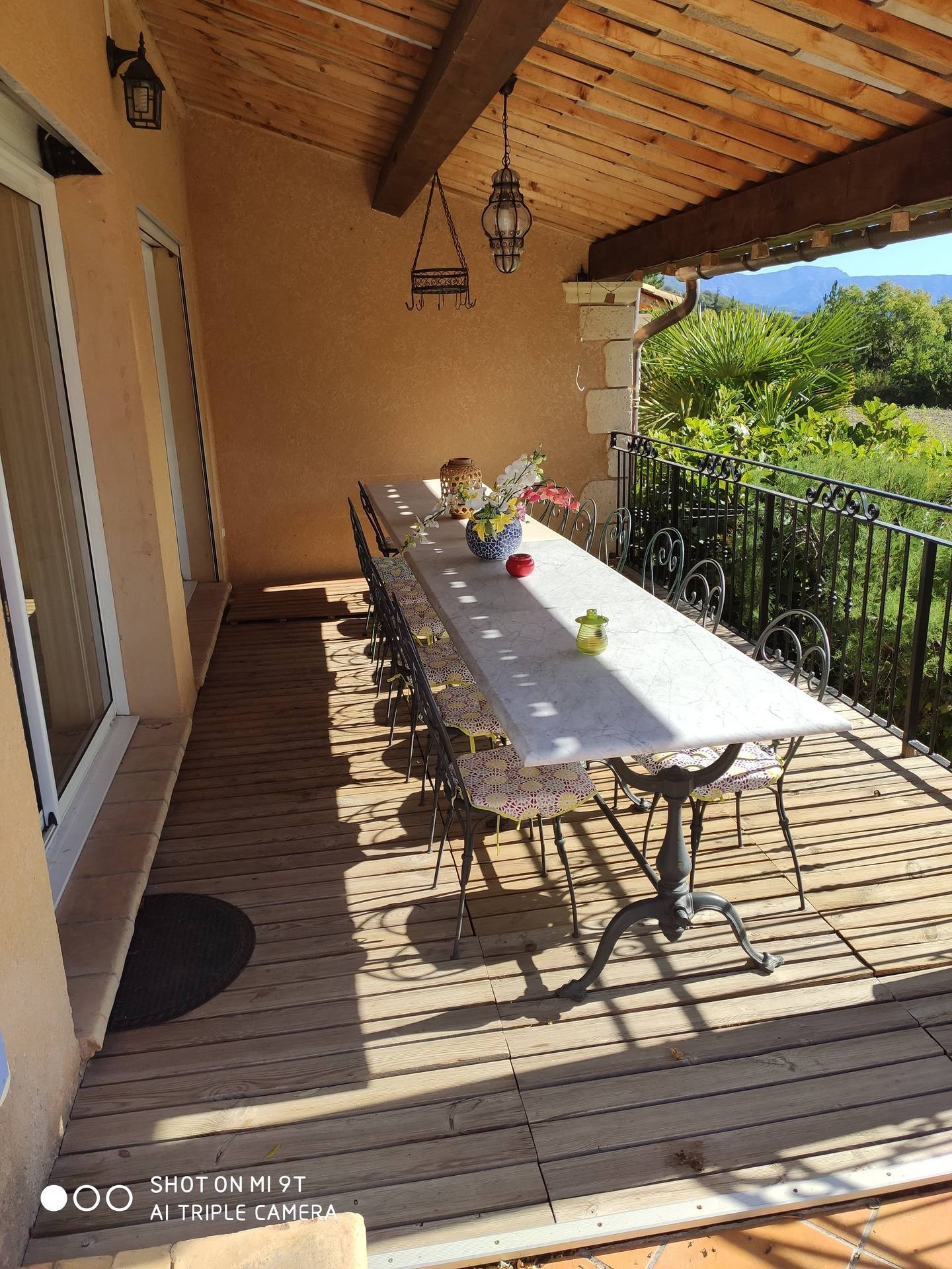 dépendances,le soir vous prendrez l'apéritif sous les étoiles dans le patio marocain ou dans l'orangerie petit salon d'extérieur , aux heures les plus chaudes la terrasse couverte sera bienvenue pour prendre vos repas .