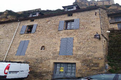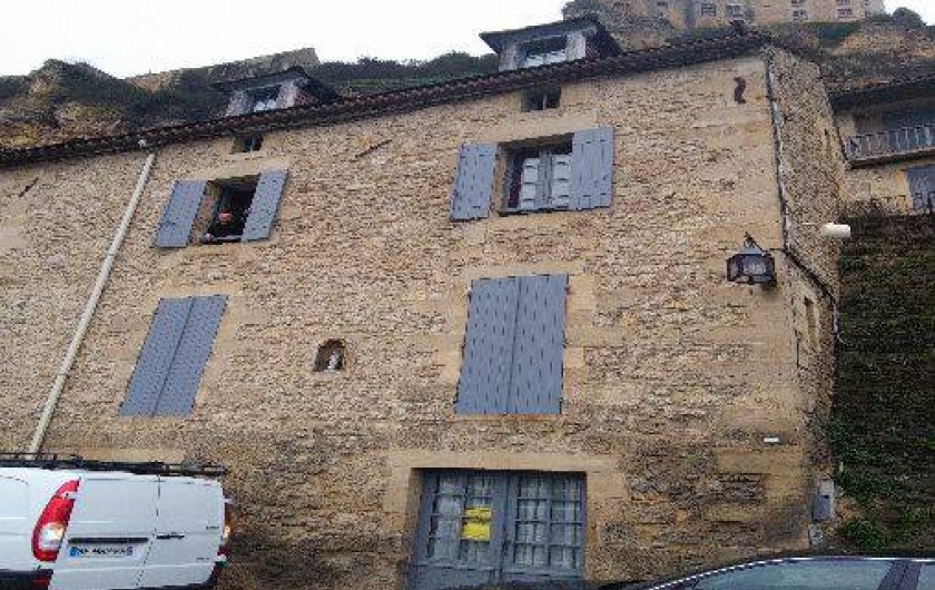 location maison mitoyenne dans le village médiéval Beynac , au pied du château de beynac , face à la rivière dordogne et vue sur 3 châteaux , proche de la ville sarlat. tous commerces et activités à proximité, tout confort, séjour et cuisine ouverte équipé, salle à manger, 3 chambres avec 3 lits de 140 cm baignoire, douche , 2 wc , écran plat, micro-onde...