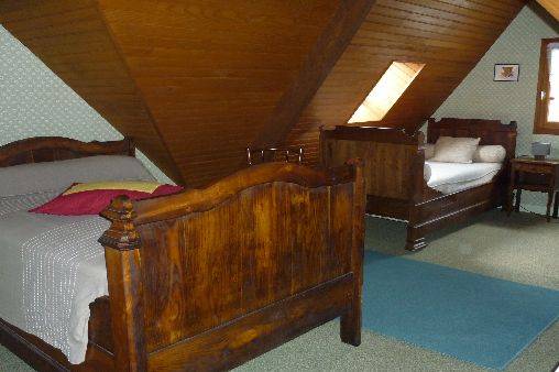 A l'étage, 3 chambres (5 lits), une salle de bains avec Wc.