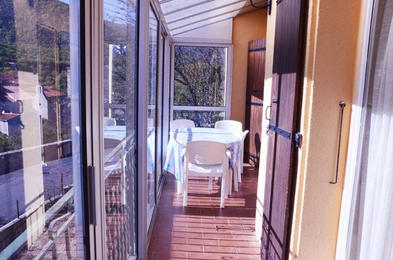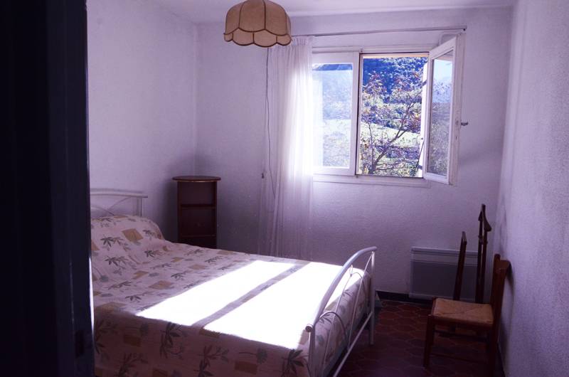 Maison individuelle à 1 km des thermes, avec un jardin de 600 m2. Belle vue sur la montagne et sur le village de Campôme, de plein pied. Séjour plein sud avec loggia, 2 chambres, cuisine, sdb et wc indépendants. Garage. Arrêt de bus à proximité.