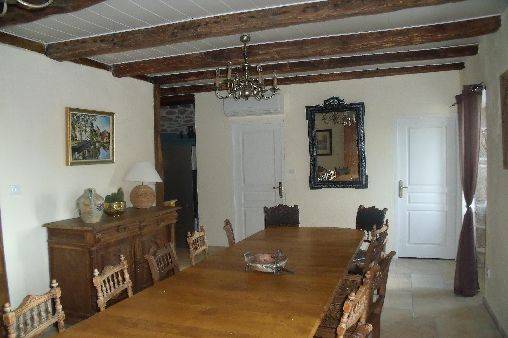 Au rez de chaussée entrée donnant d’un coté sur le salon avec cheminée et de l’autre sur une cuisine américaine avec bassière et encadrement de cheminée, une pièce dépendance cuisine et buanderie, toilette, grande salle a manger avec porte fenêtre donnant sur terrasse aménagée avec au fond du parc privatif une piscine balnéo commune couverte en service d’avril à octobre .