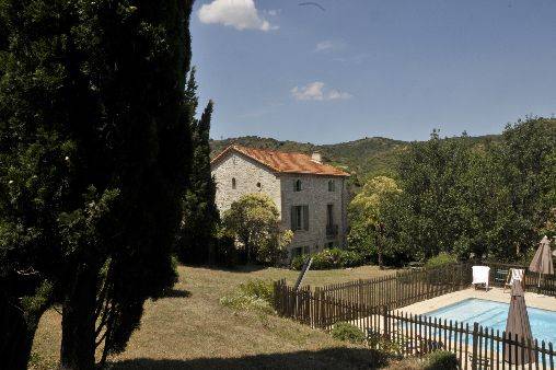 Maison de maître bâtie en pierre de pays avec vue sur la garrigue et le vignoble et les toits du petit village de Cascastel (200 habitants). Pièces vastes et lumineuses, cheminées, piano de qualité à disposition, salons, chaque chambre dispose de sa salle de bains et toilettes indépendantes. Vaste parc