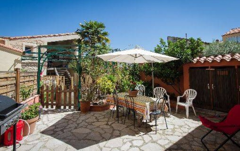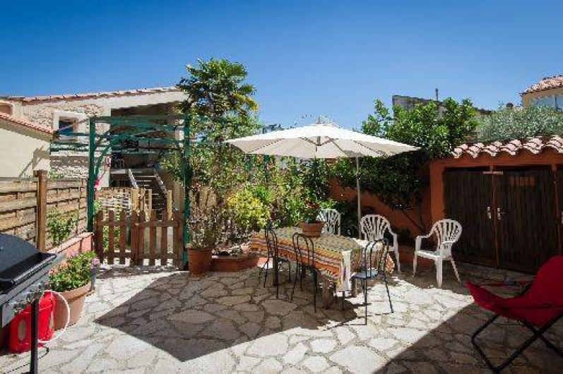 Cour privative de 35 m². Jardin privatif clos et arboré. Salon de jardin. Barbecue. Draps fournis.