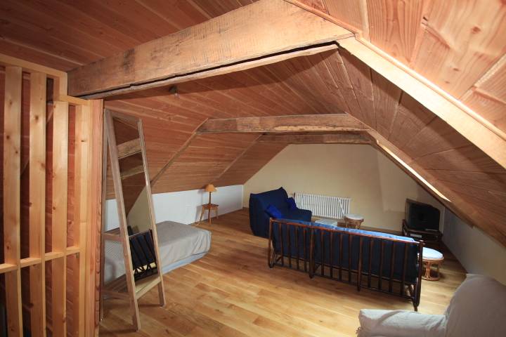 2ème étage : 75 m² - dortoir commun avec 2 lits simple et 2 lits double, espace jeux et coin télé (avec lecteur dvd) (dont 1 canapé-lit).