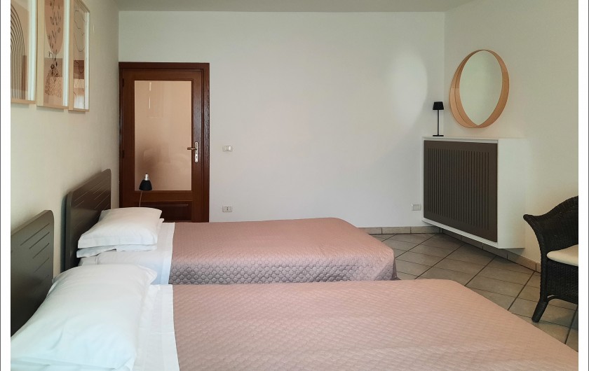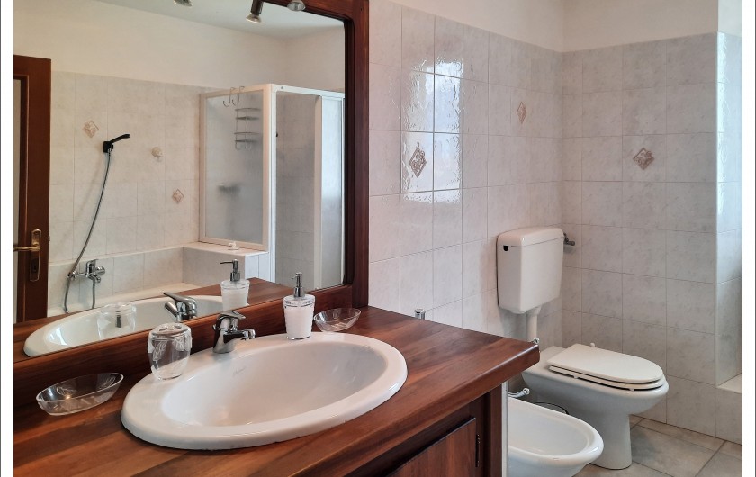 Dans le détail, au premier étage, vous trouverez une salle équipée d'un lit king-size et une grande armoire, et une chambre avec deux lits simples (peuvent être joints pour former un lit king) et en plus un lit pour bébé (disponible sur demande ). La salle de bain est complète avec lavabo, WC et bidet, baignoire et douche. La cuisine est très grande et entièrement équipée, elle est équipée avec vaisselle, couverts et ustensiles de cuisine suffisant pour six places, un réfrigérateur-congélateur, cuisinière à quatre plaques avec four, micro-ondes, machine à café et une machine à café, grille-pain et presse-agrumes, et de la télévision par satellite. Adjacent à la cuisine est une salle à manger lumineuse. Ne manquez pas le séjour pour un moment de détente avec des canapés sièges six. Le salon est également fourni avec un grand canapé-lit. Dans le couloir, vous pouvez accéder à la salle de stockage contenant tout le nécessaire pour nettoyer la maison, y compris l'aspirateur.