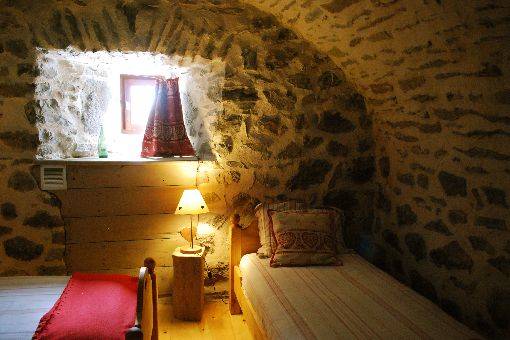 Authenticité de cette maison de montagne construite en pierres de lave et toit d’ardoises, coiffée par sa charpente robuste et entourée de ses murs de pierres sèches. Sous son toit, tout n’est que chaleur du bois, lumières matinées des tons de chaux et pierres centenaires