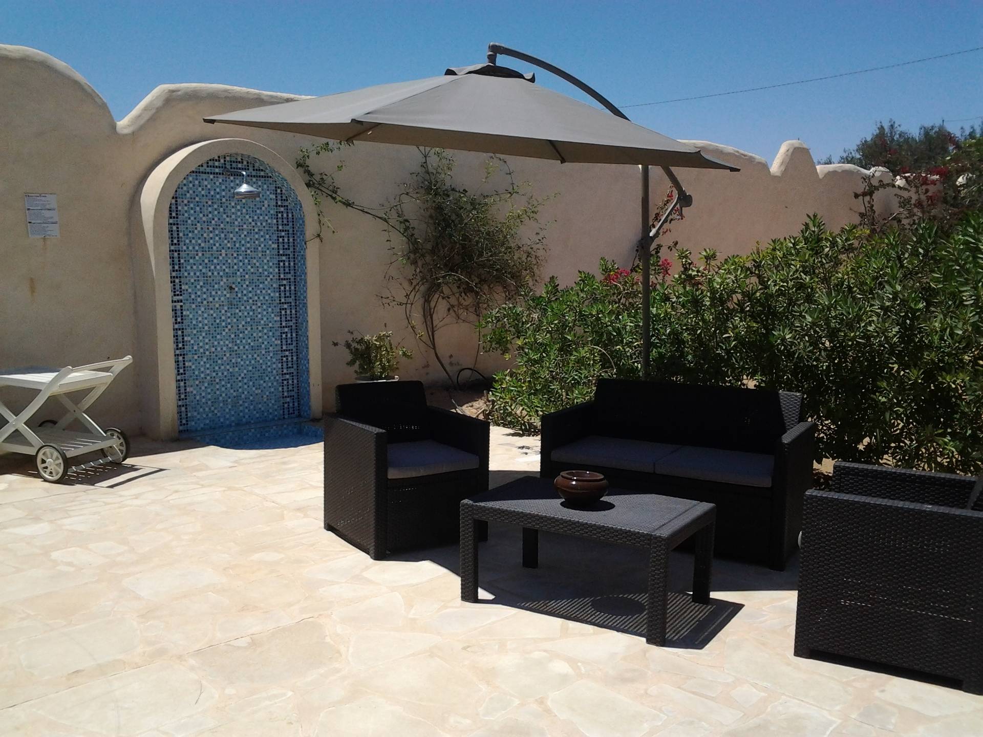 Adorable et charmante petite maison de vacances, typique, très propre et très soignée et tout confort. située dans la campagne djerbienne, très calme et très tranquille, à 500 m du petit village de Guizen, à 2 kms de la zone touristique, très belle résidence,