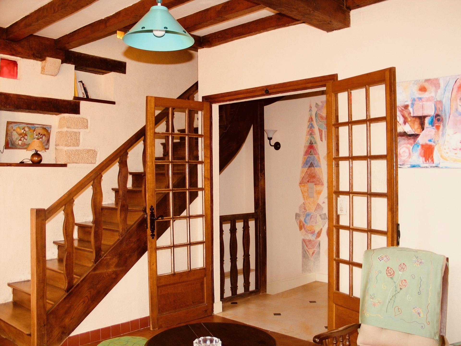 Maison du village de Domme, 'La maison du Peintre', 90m² habitable, spacieuse et confortable, lumineuse et agréablement décorée par une artiste Italienne. Une ample terrasse de 50 m2 semi ombragée,calme et 'trés privée' prolonge la salle à manger et la cuisine.