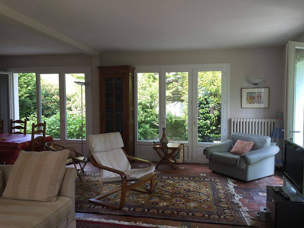 En été, ses habitants apprécient particulièrement de pouvoir déjeuner sur les terrasses qui entourent la maison et qui donnent sur une très vaste jardin arboré de 1 hectare.