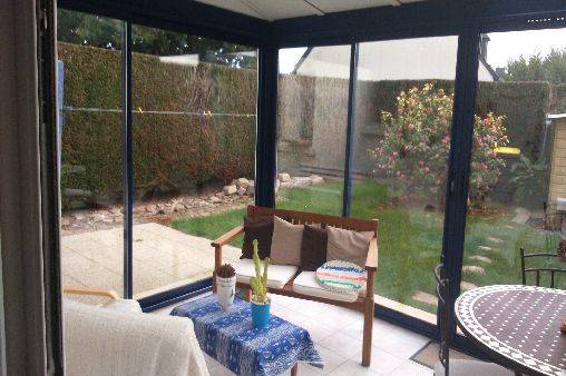 Côté sud est, véranda donnant sur petite pelouse sans vis à vis