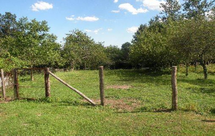 verger avec pommiers, poiriers, cerisiers, mirabelliers et noyer.
