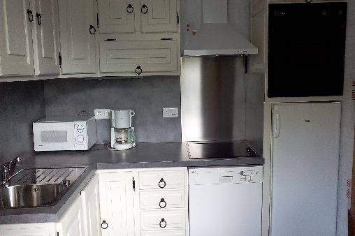 -au premier niveau niveau, grande terrasse, pièce à vivre avec coté repas et coté salon, cuisine indépendante, WC, une chambre