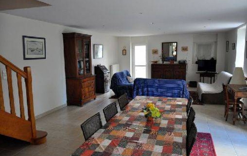 Salle, salon spacieux 3 canapés, table, bureau, grande table, salle à manger, meubles rangements, bibliotheque, télévision. dvd, wifi, cd , radio, documentation sur la région.